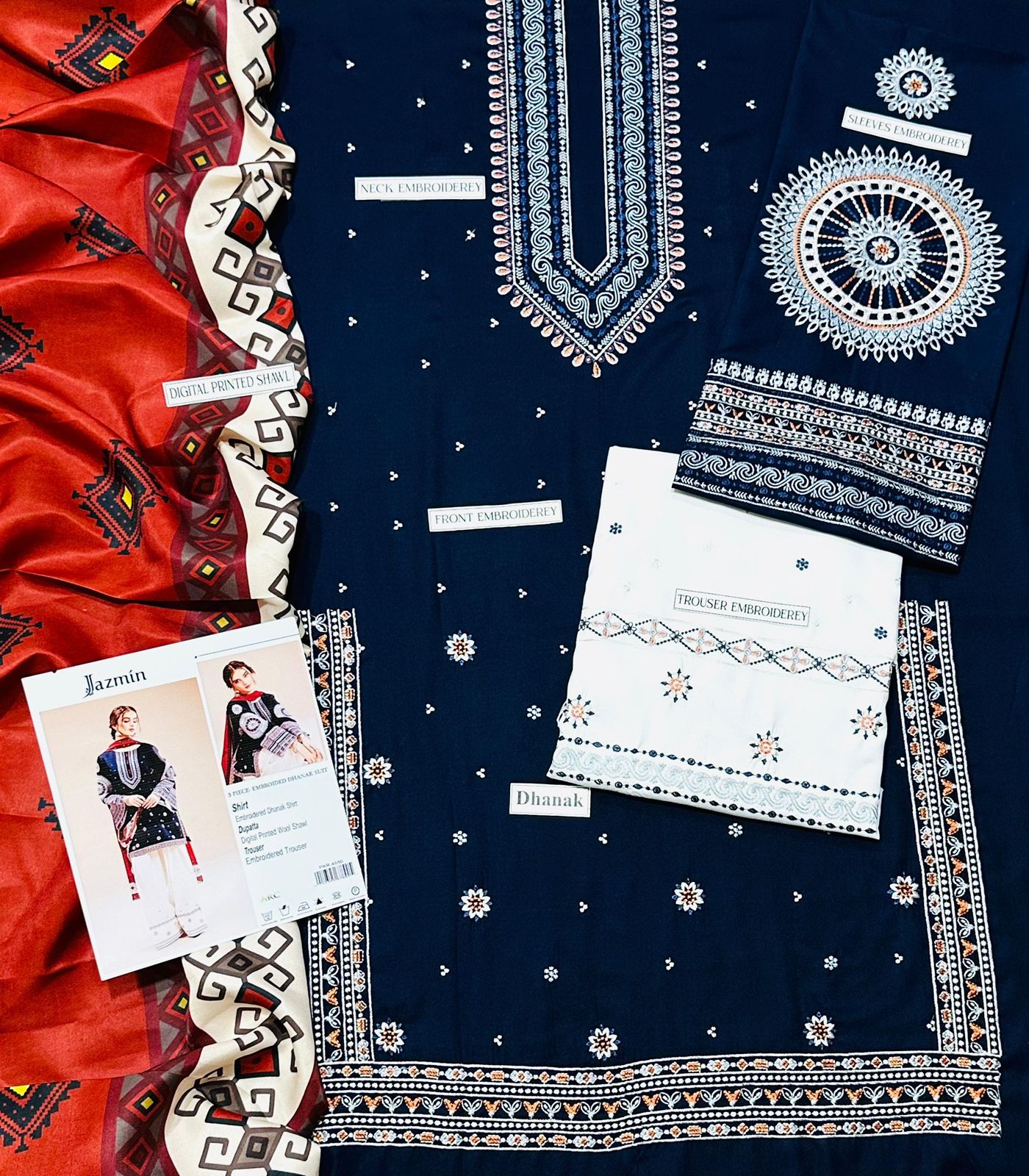 Mix Brands – DHANAK 3-Piece Embroidered Suit