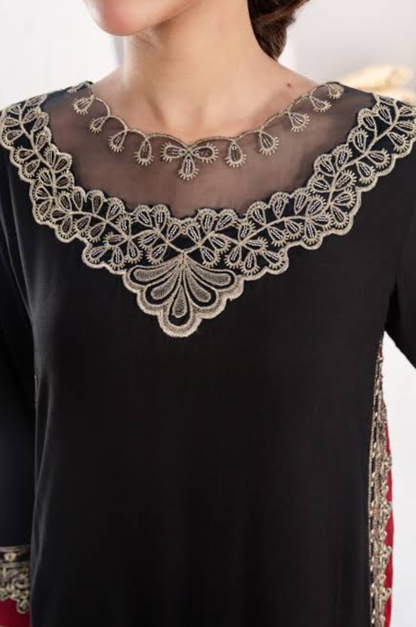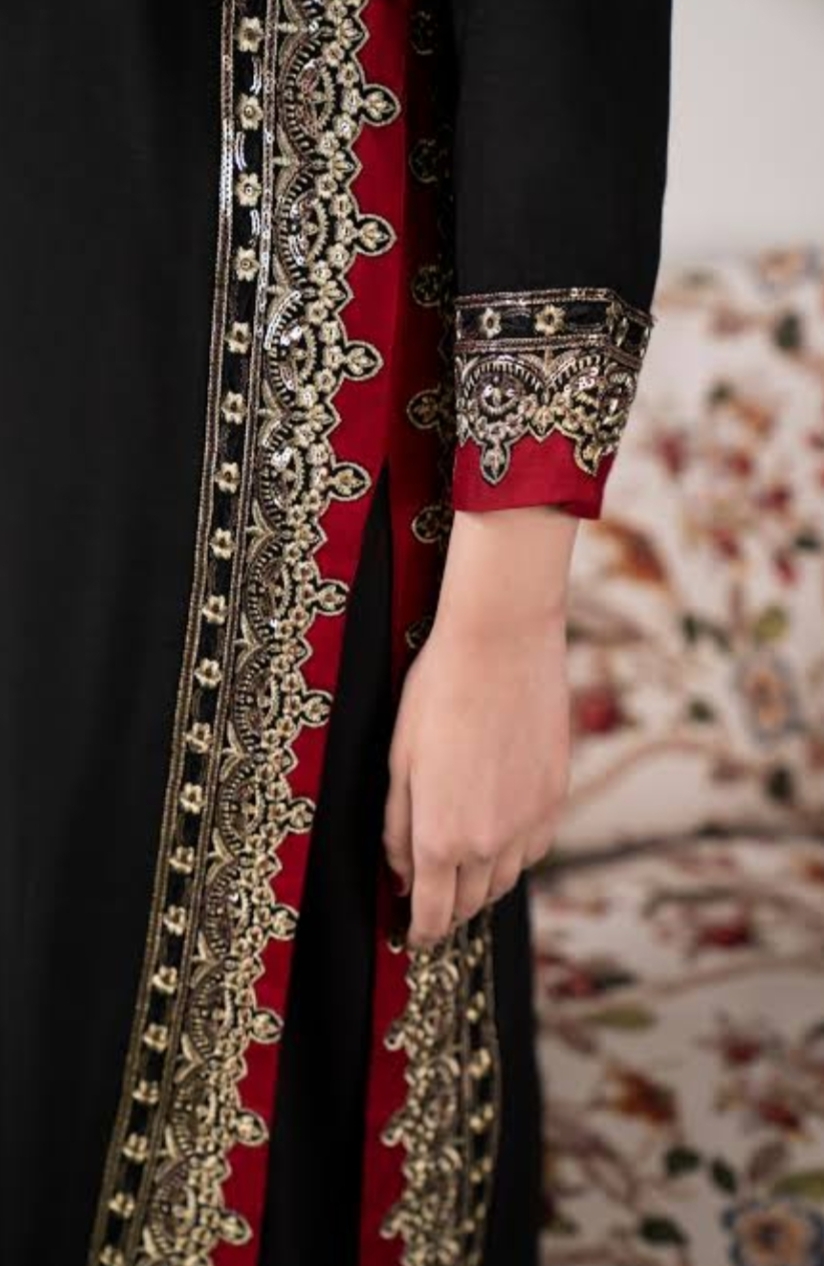 ❤️ Front fully adorned with heavy embroidery, enhanced with laser-cut & cutwork daman